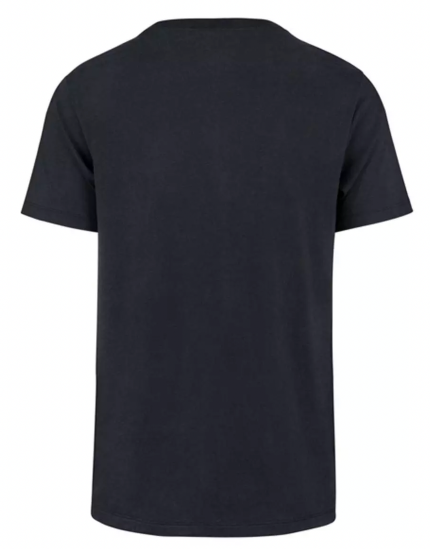 New England Patriots Mens Atlas Blue Premier Franklin Tee By 47' Brand. Crafted from ring-spun combed cotton with distinctive slub yarns, the fabric delivers a naturally textured finish that feels as good as it looks. The tagless neck label ensures all-day comfort, while the vintage screen print graphic adds timeless style. Built to last with 100% cotton construction and a classic rib neck design, this tee is the perfect addition to any Patriot fan's wardrobe.