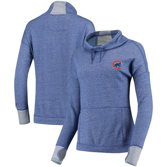 Women's Chicago Cubs Antigua Heathered Royal Fortune Half-Zip Pullover Sweater
