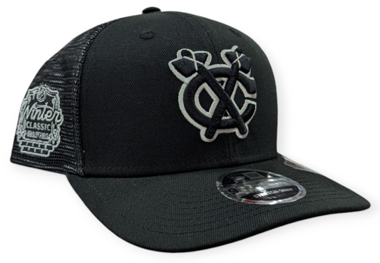Men's Chicago Blackhawks New Era Black 2025 Winter Classic Performance 9SEVENTY Trucker Hat