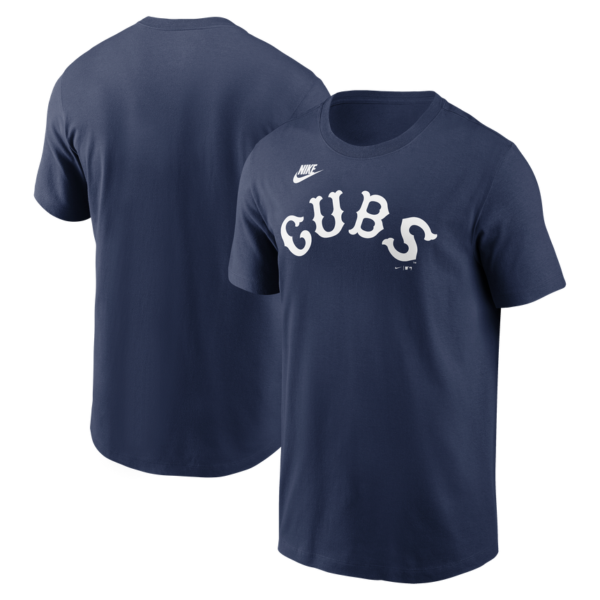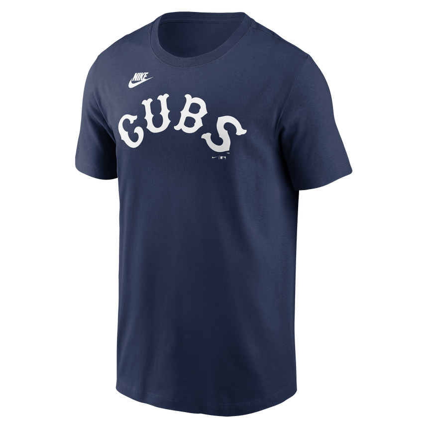 Crafted from 100% cotton, this officially licensed Men's Chicago Cubs Nike Cooperstown Navy Wordmark T-Shirt features screen print graphics, making it a must-have for any fan. Show your support with this comfortable and stylish tee. Perfect for game days or casual wear.
