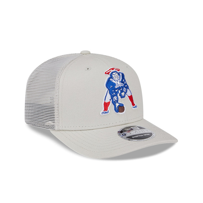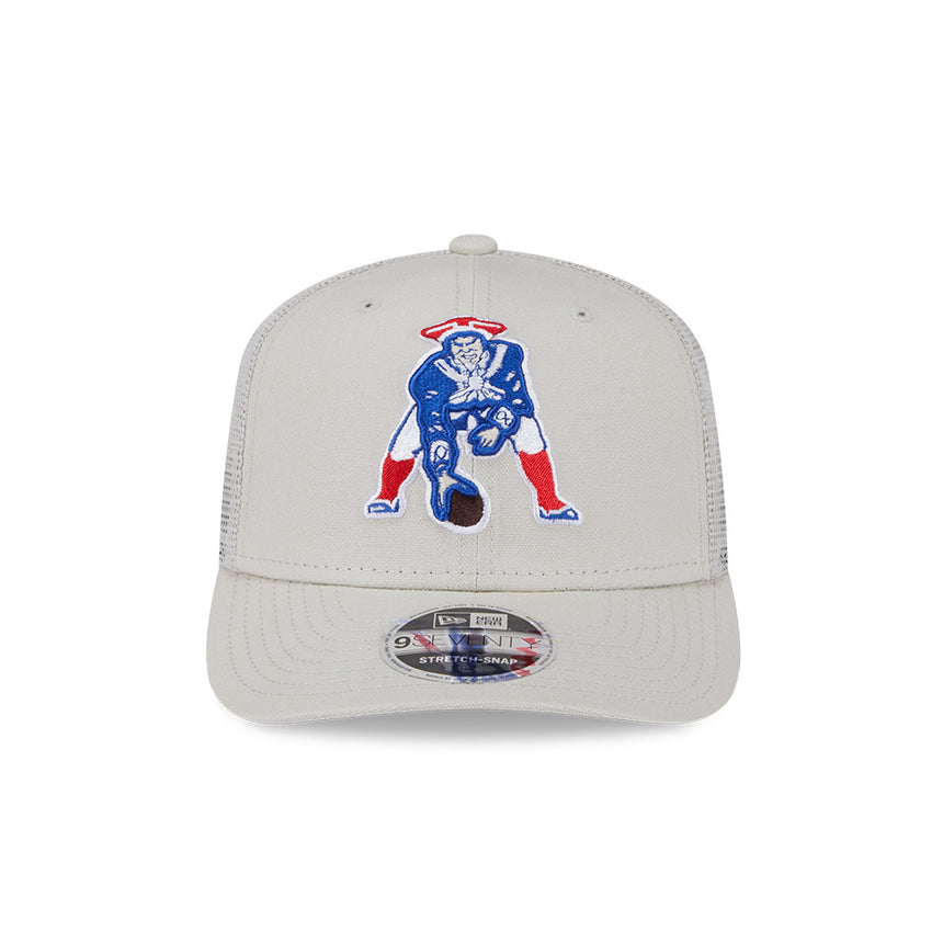 Men's New Era Stone New England Patriots Canvas Trucker 9SEVENTY Stretch-Snap Hat