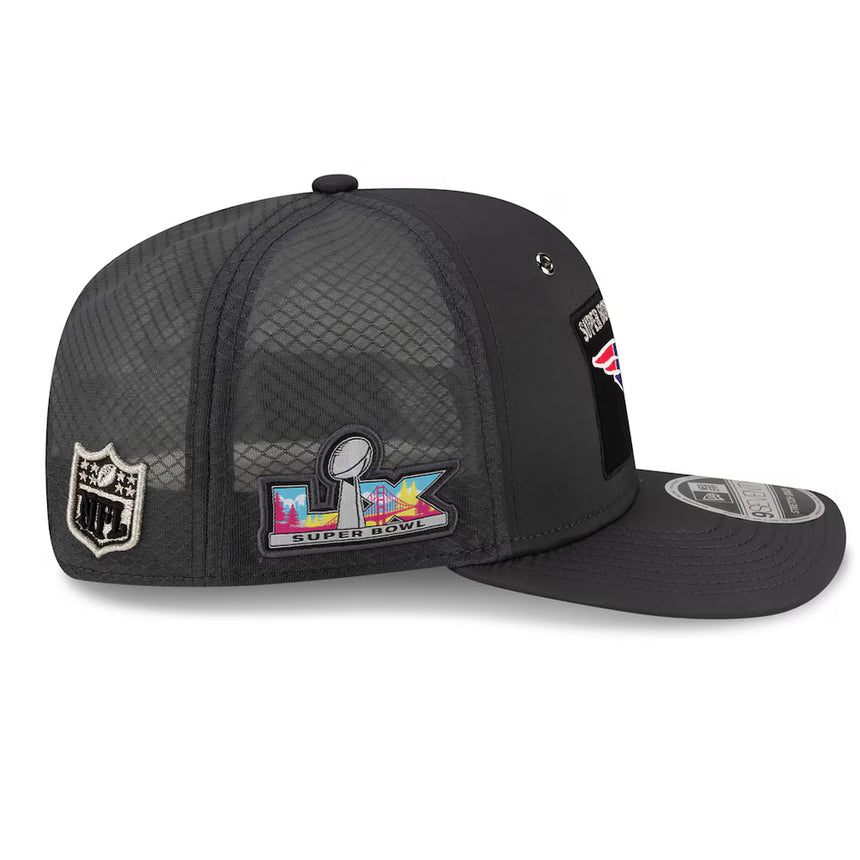 Experience premium performance with the New England Patriots New Era Super Bowl LX Opening Night 9SEVENTY adjustable hat. This modern design features a structured crown and semi-curved visor paired with a performance stretch sweatband for all-day comfort. Advanced COOLERA® technology actively wicks away sweat, while MICROERA™ anti-microbial treatment reduces odor to keep you fresh. The six-panel construction includes front eyelets and mesh mid and rear panels for enhanced breathability. A Super Bowl LX patch adorns the side, complemented by embroidered graphics celebrating the championship moment. Constructed from 100% polyester woven material with a snap closure for adjustable fit. One size fits most. Officially licensed and imported. Maintain with a simple damp cloth wipe.