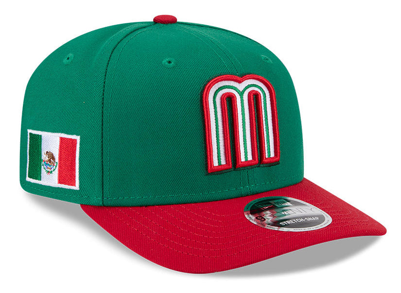 Celebrate Mexico's 2026 World Baseball Classic campaign with this New Era 9SEVENTY adjustable hat. The navy blue design showcases embroidered details including the team logo on the front, flag on the side, New Era branding, and the prestigious World Baseball Classic insignia on the back. Built with a structured curved bill and low crown silhouette, this polyester cap features a convenient back snap closure for a customizable fit. The contrast visor adds visual depth, while the durable construction ensures lasting wear. Easy maintenance with a simple cloth wipe-down keeps it looking sharp. Imported quality craftsmanship makes this an essential piece for any serious fan.