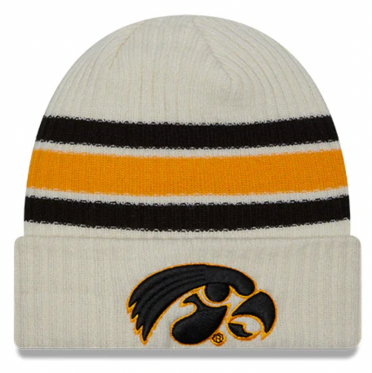 Men's Iowa Hawkeyes New Era Off White Vintage Cuffed Knit Hat