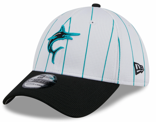 Men's Miami Marlins New Era 2024 Batting Practice White/Black 39THIRTY Flex-Fit Hat