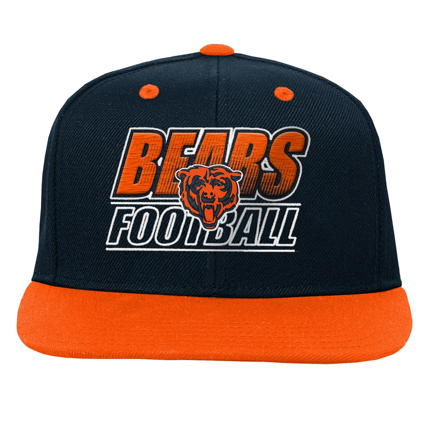Get your little Bears fan game day ready with the Youth Chicago Bears navy Flat Bill Snapback Hat. This hat ensures a comfortable and secure fit for your young fan. Perfect for showing off their Chicago pride in style! (Go Bears!)