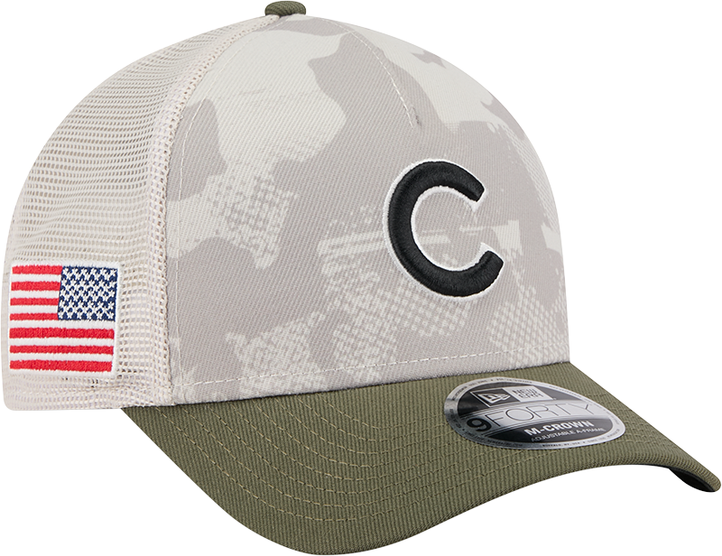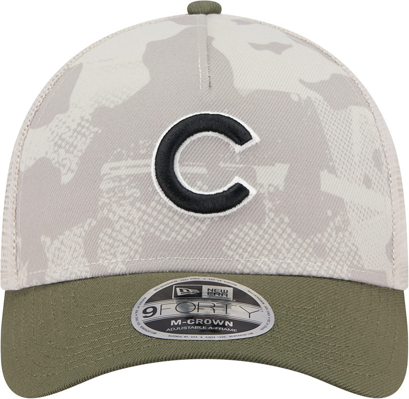Chicago Cubs 2025 Armed Forces Day Camo New Era 9FORTY M-Crown Trucker Adjustable Hat