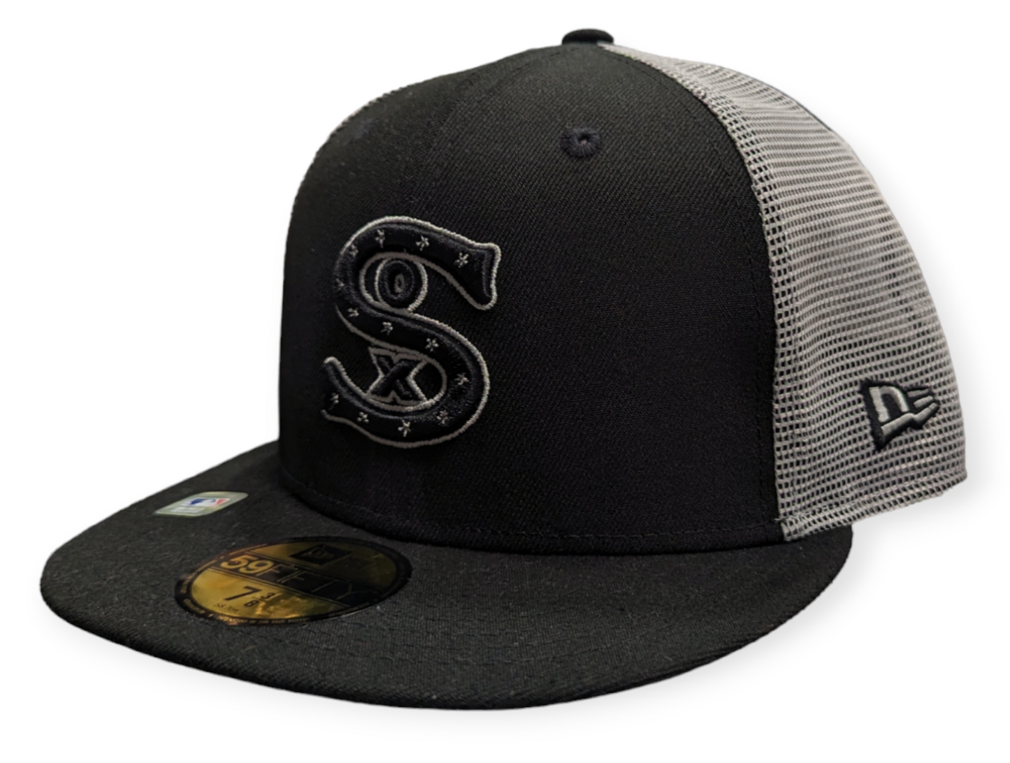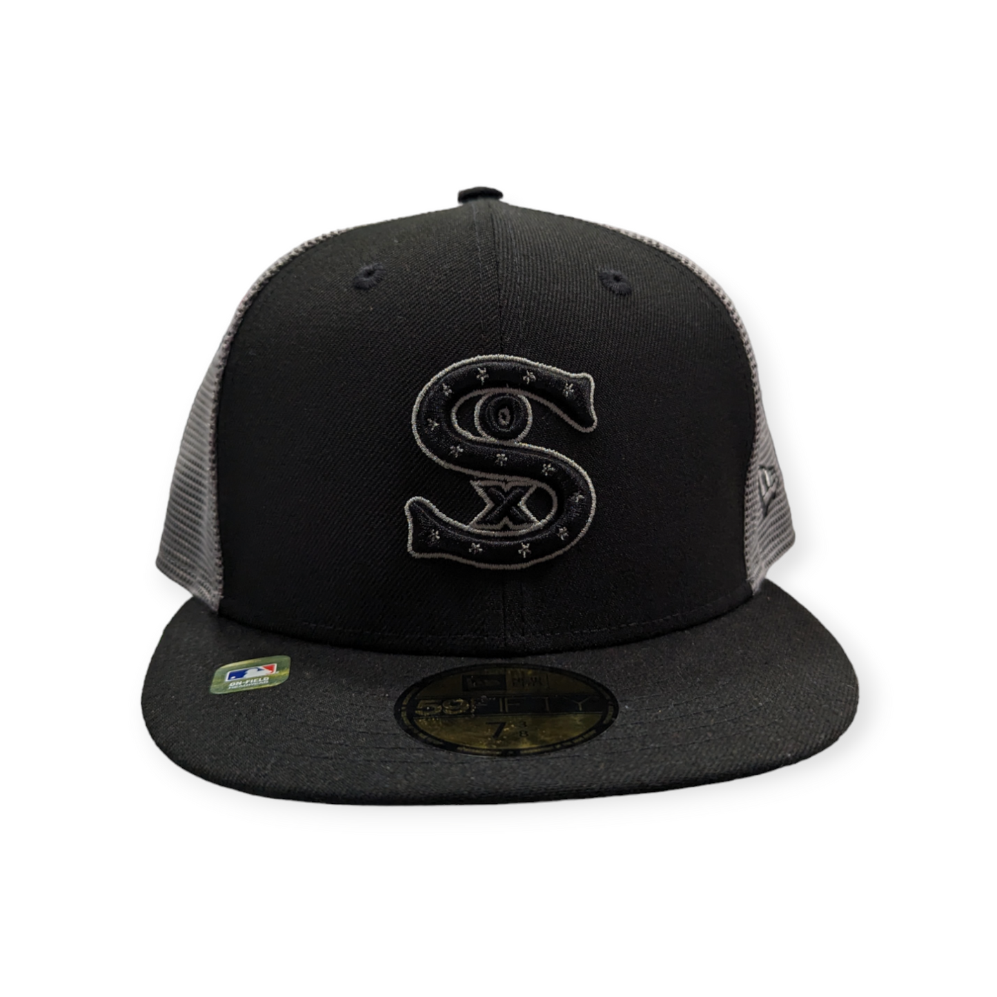 - The Chicago White Sox New Era Black/Gray Trucker BP 59FIFTY Fitted Hat is perfect for game day with its mesh back to keep you cool and comfortable. This professional-grade hat will help you perform at your best during practice, making it an essential accessory for any dedicated player.