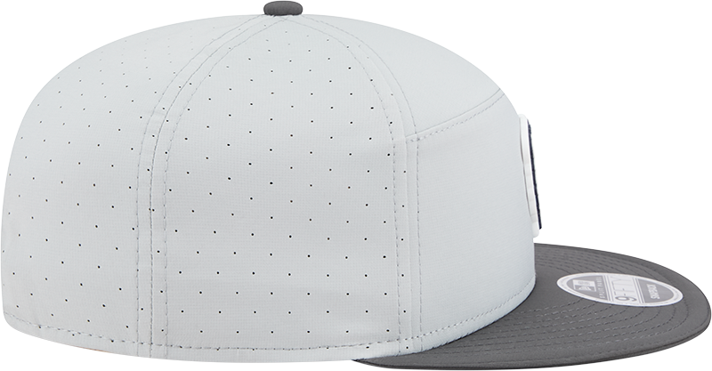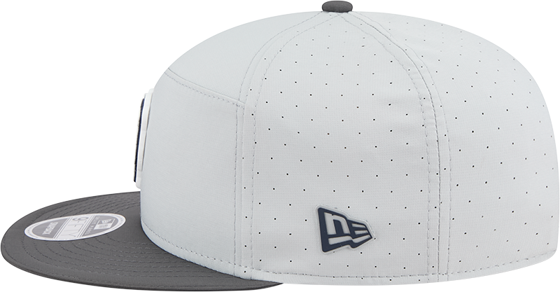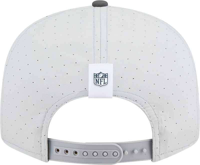 Crafted for performance and style, the Men's Chicago Bears New Era 9FIFTY Snapback Hat features a high crown and structured fit that mirrors the iconic 59FIFTY silhouette with an adjustable open back for customized comfort. Constructed from a breathable 97% polyester and 3% spandex blend, its perforated mid and rear panels enhance ventilation during intense training sessions. The split-panel design, complemented by a contrast-color flat bill and multi-layer visor with team stripes, delivers a distinctive look. A rubberized team logo is meticulously stitched on the front, while the woven NFL clip tag on the back authenticates this officially licensed Training Camp gear. Easy to maintain with a simple wipe clean, this one-size-fits-most snapback is engineered for fans and professionals alike.