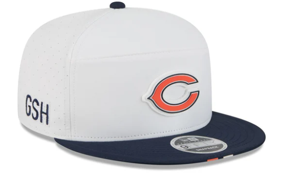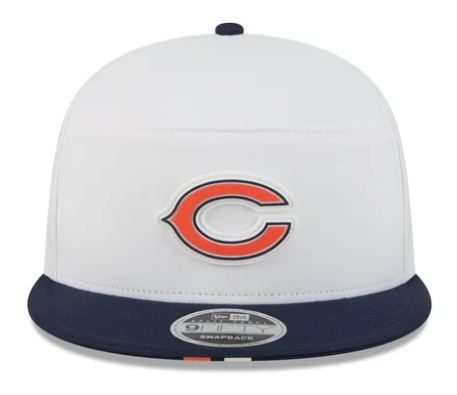 Men's Chicago Bears New Era White/Navy Secondary Logo 2025 NFL Training Camp Split Panel 9FIFTY Snapback Hat