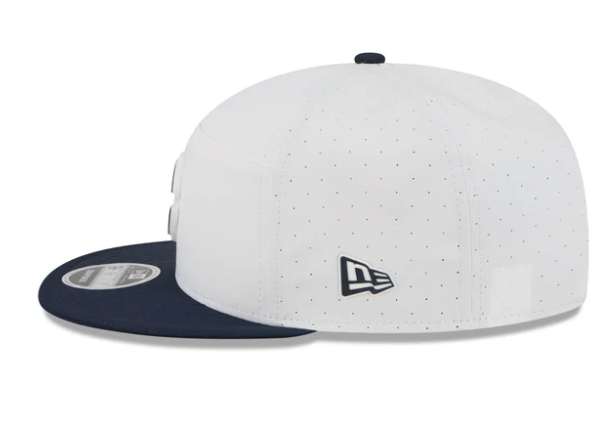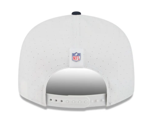 Featuring a crisp white and navy split-panel design, breathable perforated fabric, and a rubberized team logo stitched front and center, it’s perfect for training camp or game day fun. The adjustable snapback ensures a comfy fit, while the multi-layer visor with team stripes adds a stylish touch. Officially licensed and ready to keep you cool and spirited all season long!