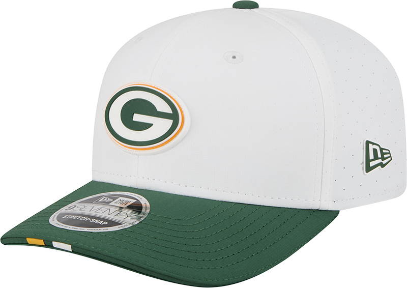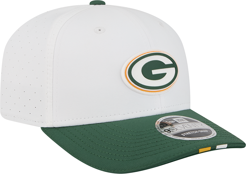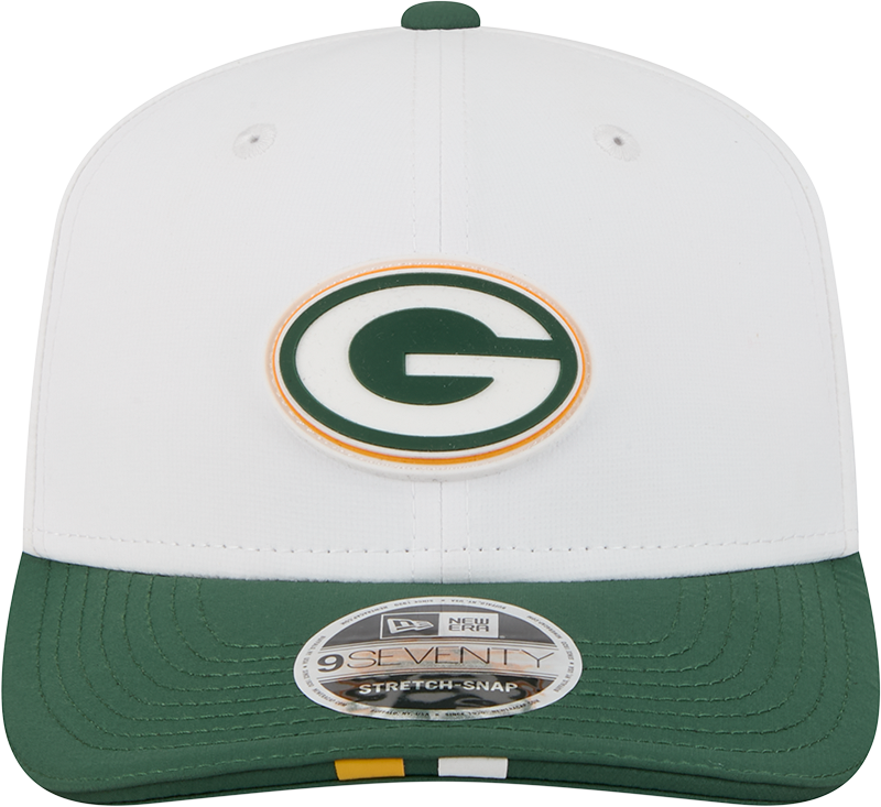 Men's Green Bay Packers New Era White/Green 2025 NFL Training Camp 9SEVENTY Adjustable Hat