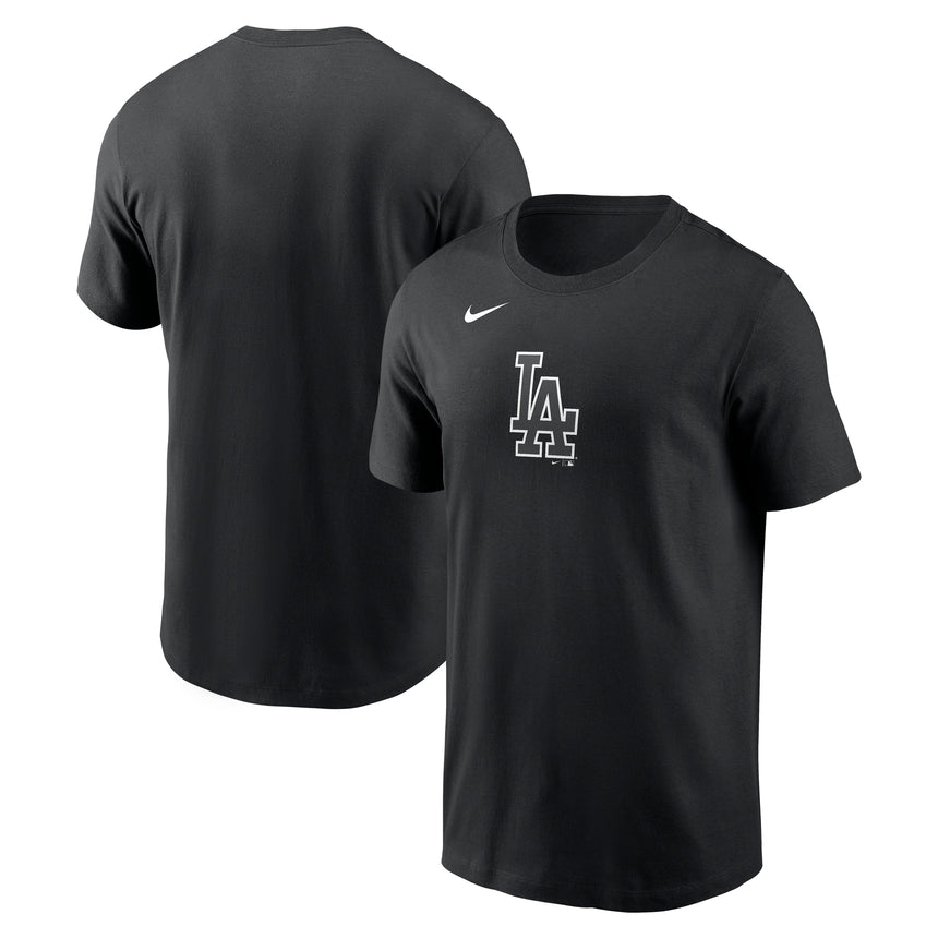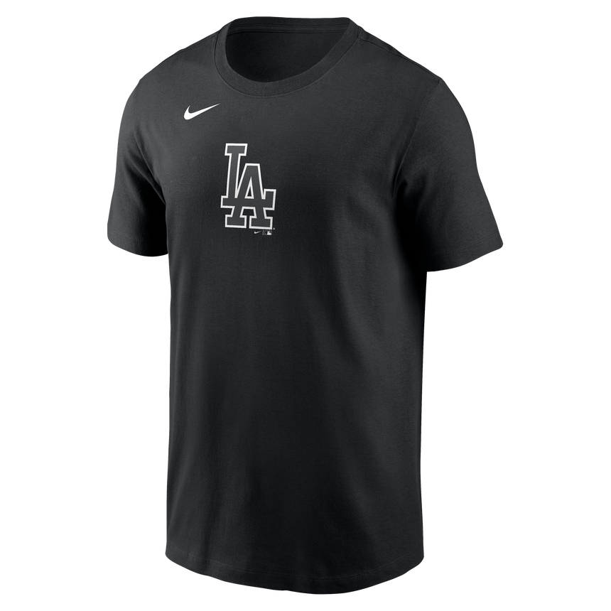 Men's Los Angeles Dodgers Nike Black Shoot For The Sky T-Shirt Made with 100% cotton and featuring a crew neck and short sleeves, this officially licensed tee is perfect for any die-hard fan. The striking screen print graphics add a touch of team pride to your wardrobe. Machine washable for easy care. Imported.
