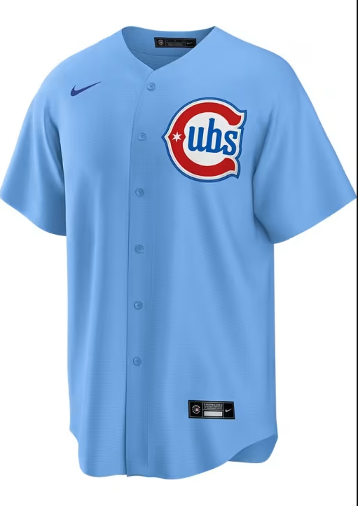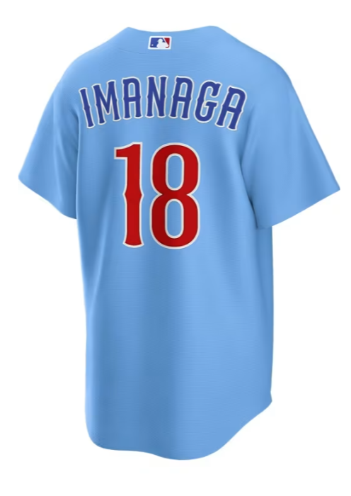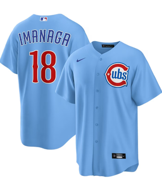 Stay comfortable while showcasing your loyalty to the Chicago Cubs with the Men's Shota Imanaga Nike 2nd Alternate Replica Jersey in Light Blue. Made from 100% Polyester and imported, this jersey includes heat-applied twill team accents, a full-button front, and a rounded hem with satin woven jock tag. With a standard fit and the MLB Batterman logo on the back neck, this officially licensed jersey is ideal for any fan looking to display their team spirit. Machine washable with a short sleeve design, this jersey is a must-have for all Chicago Cubs fans.