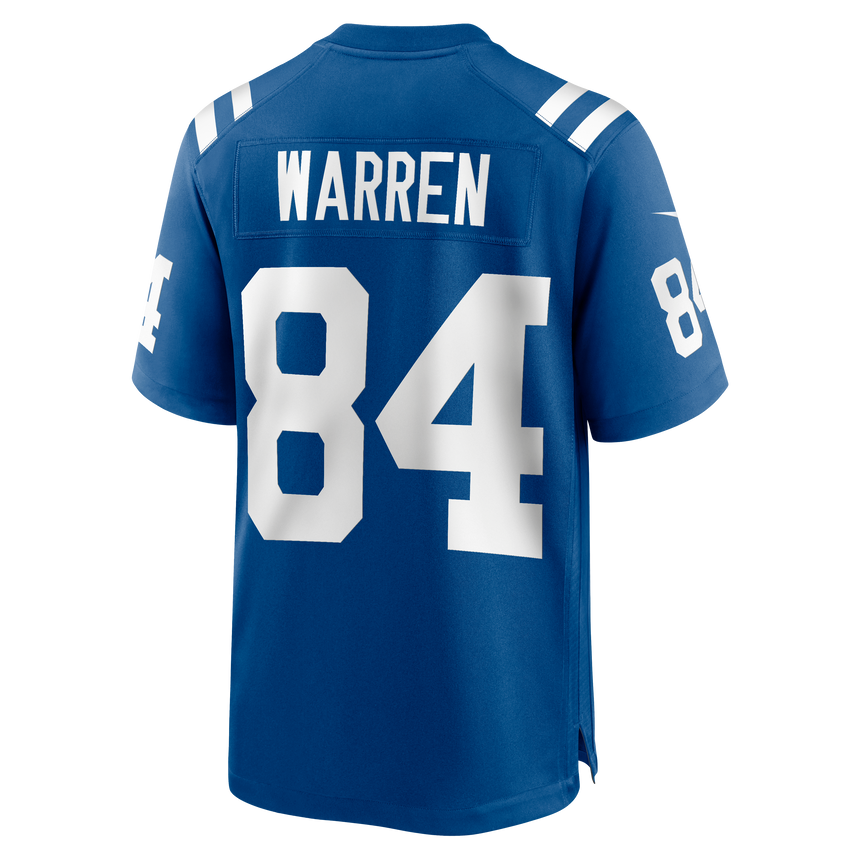 Represent your team in style with the Men's Tyler Warren Indianapolis Colts Nike Blue Replica Game Jersey. Made with breathable material and a tailored design, this jersey allows for movement and comfort on or off the field. Features screen-printed name, numbers, and logos, along with a tagless collar for maximum comfort. Officially licensed and machine washable. Go Colts!